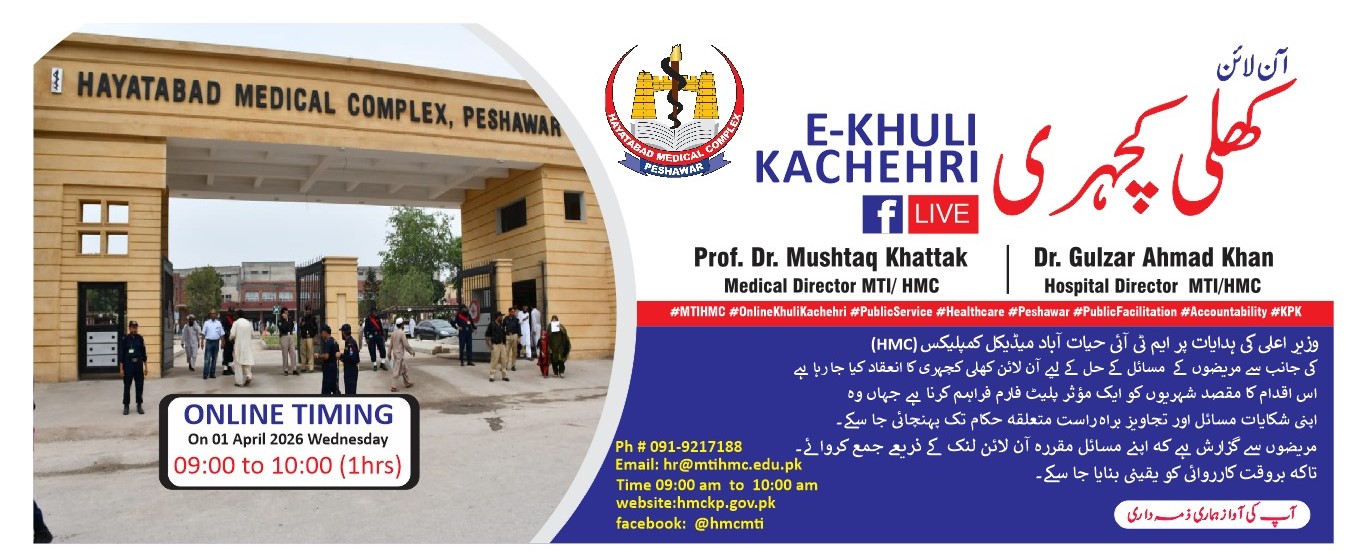 HMC stands as a beacon of healthcare in the Khyber Pakhtunkhwa, committed to providing exemplary medical services, advancing clinical education, and pioneering research. Our mission is rooted in a singular, unwavering principle: Patient-centered care. Every individual who walks through our doors is entrusted to us, and we honor that trust with the highest standards of medical expertise, empathy, and ethical practice.